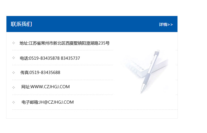 傳真:0519-83435688    郵編:213135    網(wǎng)址:WWW.czjhgj_com.xktron.com    電子郵箱:JH@czjhgj_com.xktron.com